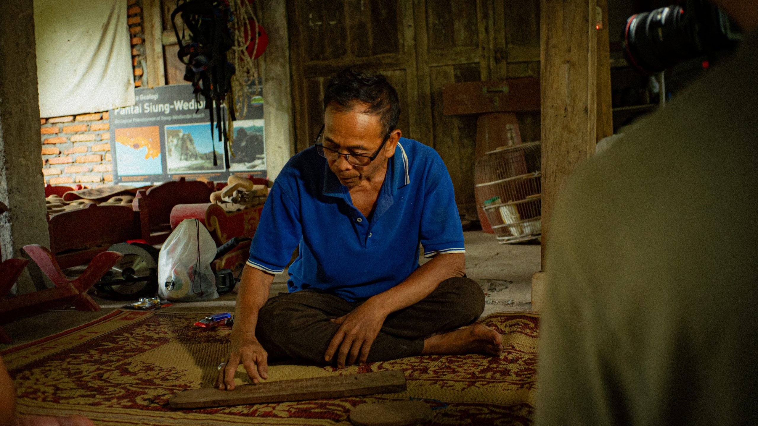 Saido, kami bisa memanggilnya Mbah Ido. Perjumpaan kami pada tahun 2012 saat terjebak badai di pantai Siung dan memaksa kami untuk tinggal semalaman di warung beliau untuk mencari perlindungan. Tahun itu kami hanya sekedar berwisata di pantai Siung sambil mengamati ikan cathal (rock skipper) yang banyak di jumpai di sisi timur pantai, kami mengenal Mbah Ido sebagai pemilik warung. Persahabatan kami semakin dalam saat cerita-cerita Mbah Ido tentang gua, mata air, bertani, cuaca dan laut selalu menarik untuk dikunjungi kembali. Kehidupan beliau selalu didasari dengan falsafah dan perhitungan Jawa yang dia perkenalkan sebagai Pawukon. Hingga pada tahun 2022 kami diundang di rumahnya yang berjarak 5km di utara pantai Siung, untuk menghadiri upacara pungkasan paguyuban mirunggan (belajar bersama) Pawukon, semacam upacara wisuda setelah delapan tahun menamatkan dalam menghafal dan memahami semua perhitungan dan falsafah hidup dengan panduan blabak Pawukon (kode-kode yang diukir dalam selembar papan kayu).